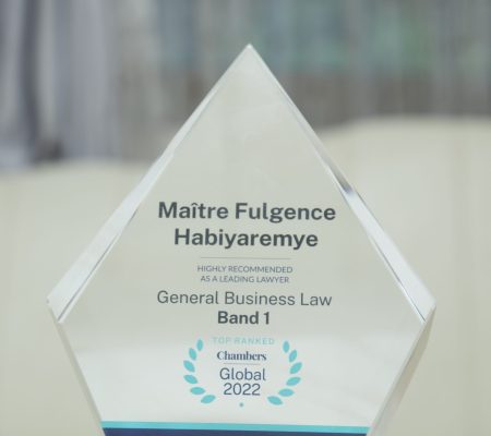 Classée Band 1 par Chambers & Partners, Me Fulgence HABIYAREMYE est un leader reconnu en droit des affaires et dans les secteurs stratégiques (mines, sociétés, énergie, financement international), confirmant son expertise et son engagement à offrir des services juridiques de qualité conformes aux standards internationaux.